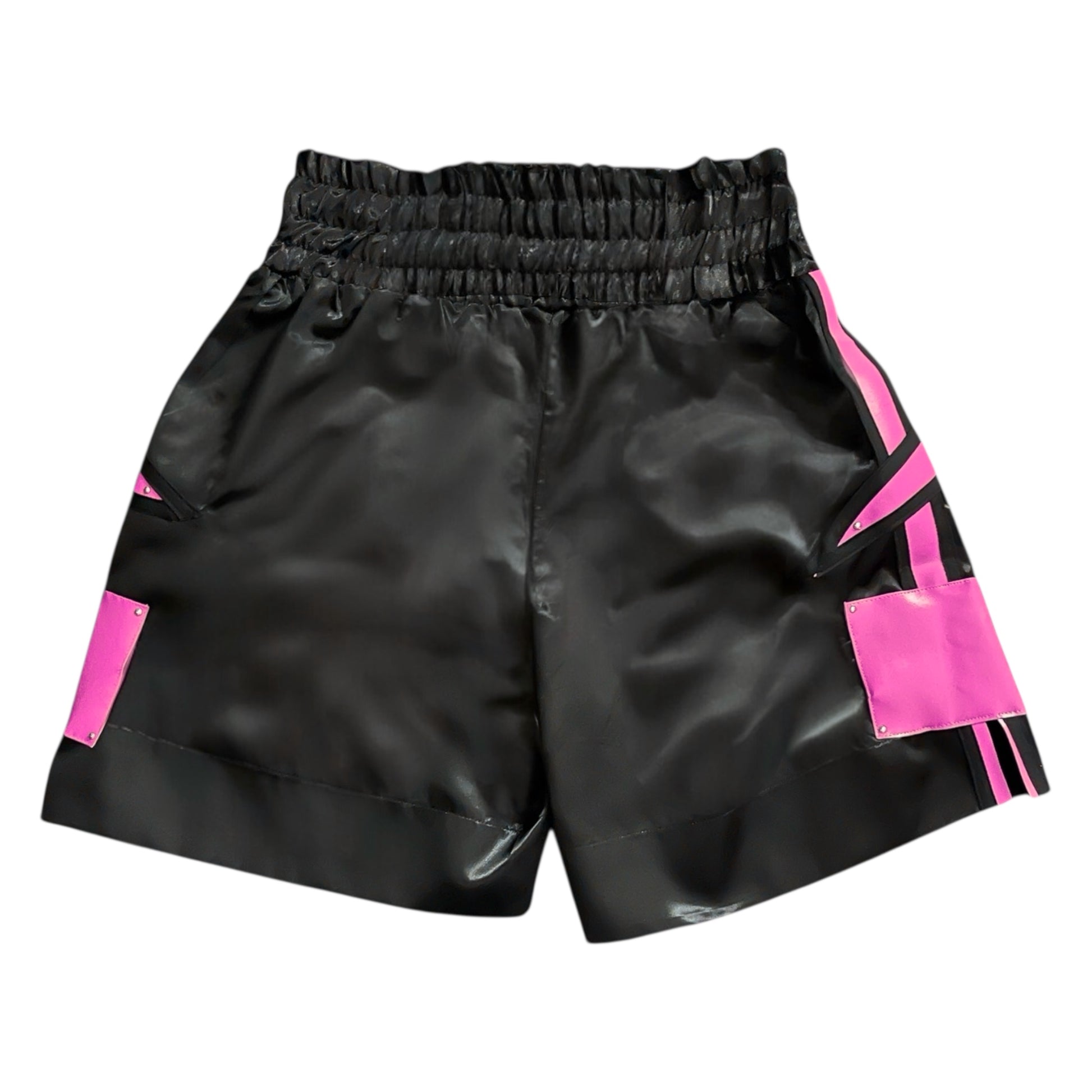 TheseIntroducing our Tactical Trunks, the pinnacle of elegance and luxury in boxing attire. Made with 100% polyester, these trunks feature a 4" waistband with leather trim and silver stud detailing. Stand out in the ring with our tactical themed design, perfect for the sophisticated boxer.